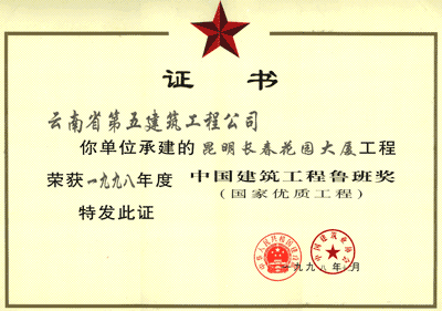 昆明建設(shè)局2000年度先進(jìn)企業(yè)